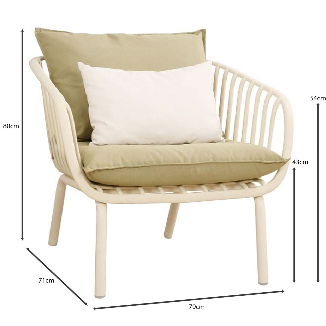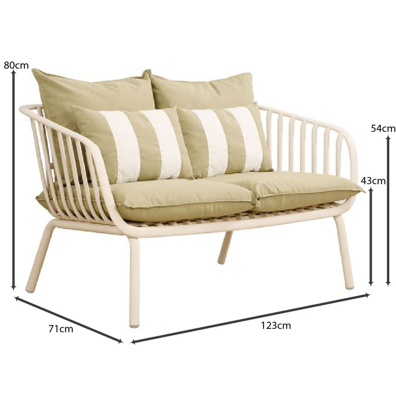 ASTRID Set Σαλόνι Κήπου 5τεμ, PP & Μέταλλο Cream, Μαξιλάρια Sandy Green